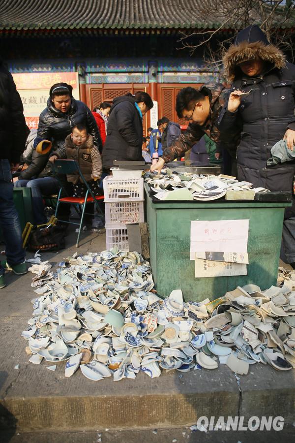 满地的碎瓷片,在外行看来莫名其妙,但在玩家眼里都是宝贝(12月18日摄)。千龙网记者 陈康摄