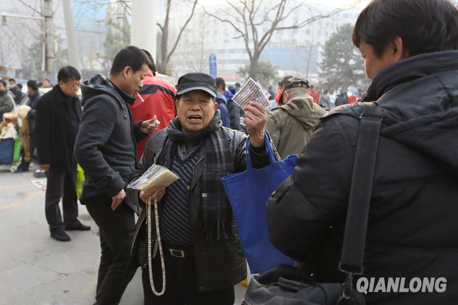 “五十两个,五十两个!”两串琼珠星月菩提的价格低到了商家的“底线”,仍无人理睬(12月18日摄)。千龙网记者 陈康摄