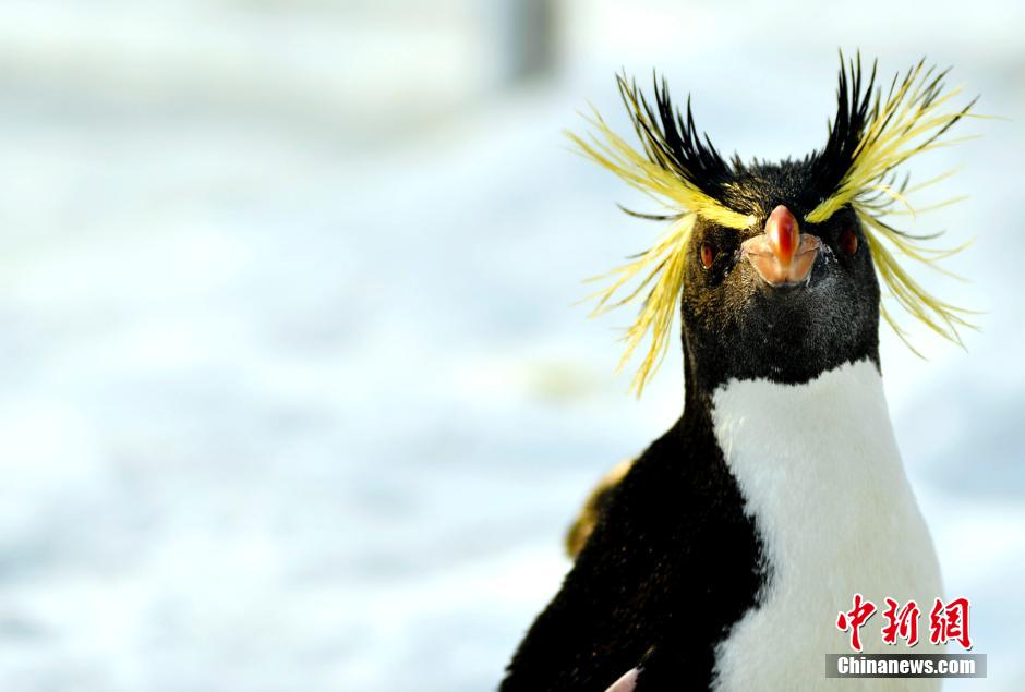 12月30日,8只“马达加斯加的企鹅”首次做客北京陶然亭公园,吸引市民围观拍照。据悉,与一般的企鹅不同的是,这些企鹅学名叫凤头黄眉企鹅,头略小,有两道后扬的黄眉毛是其鲜明特征。又因其遇到岩石双脚跳跃,所以又叫“跳岩企鹅”。陶然亭公园第五届冰雪嘉年华日前开幕,除了这8只真企鹅,陶然亭公园还在雪场中摆放了2015只仿真企鹅与市民游客一起过大年。中新社发 陆欣 摄