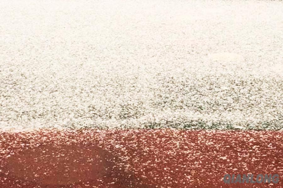 1月14日,2015年的第一场雪飘落到石景山,操场跑道变成了毛茸茸的“白地毯”。 千龙网发