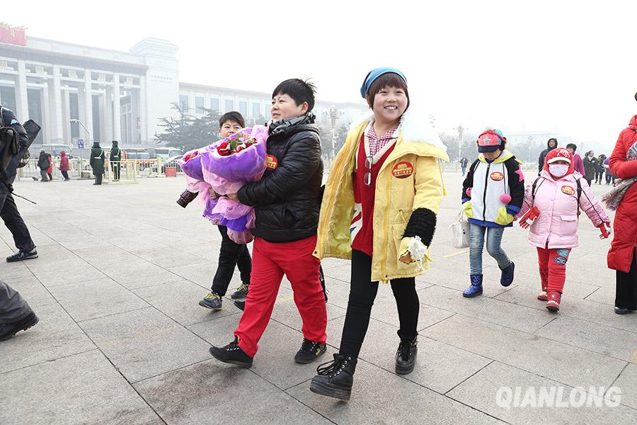 2014年2月14日,情人节,在天安门旅游网的帮助下,三对袖珍人情侣第一次登上天安门城楼集体过情人节。千龙网记者 杨理光摄