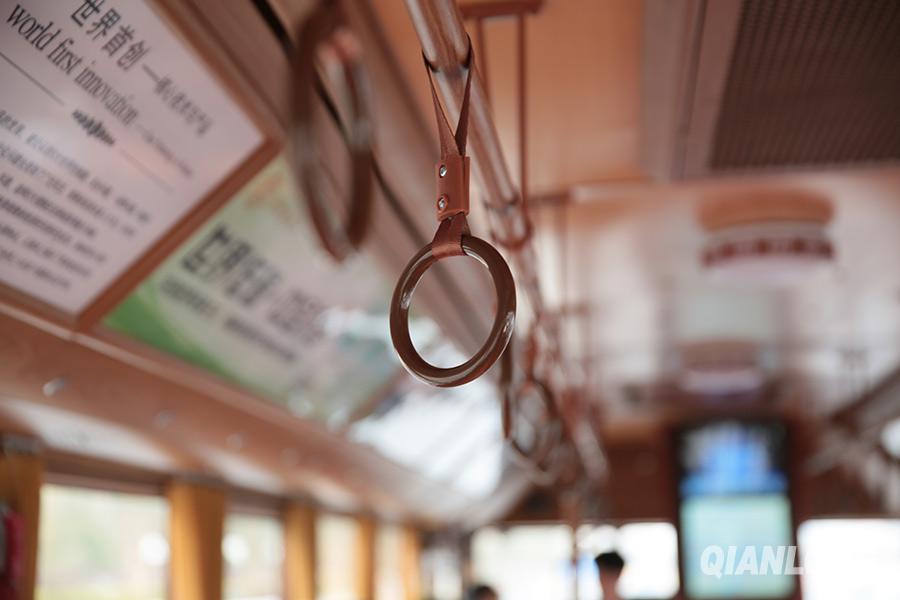 3月18日,观光2号线客车内的布置都是照着1924年北京第一辆有轨电车的模样仿造而成。千龙网记者 李贺摄