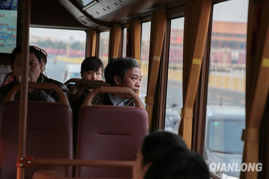 3月18日,游客乘坐“铛铛车”观光2号线客车游览北京。千龙网记者 李贺摄