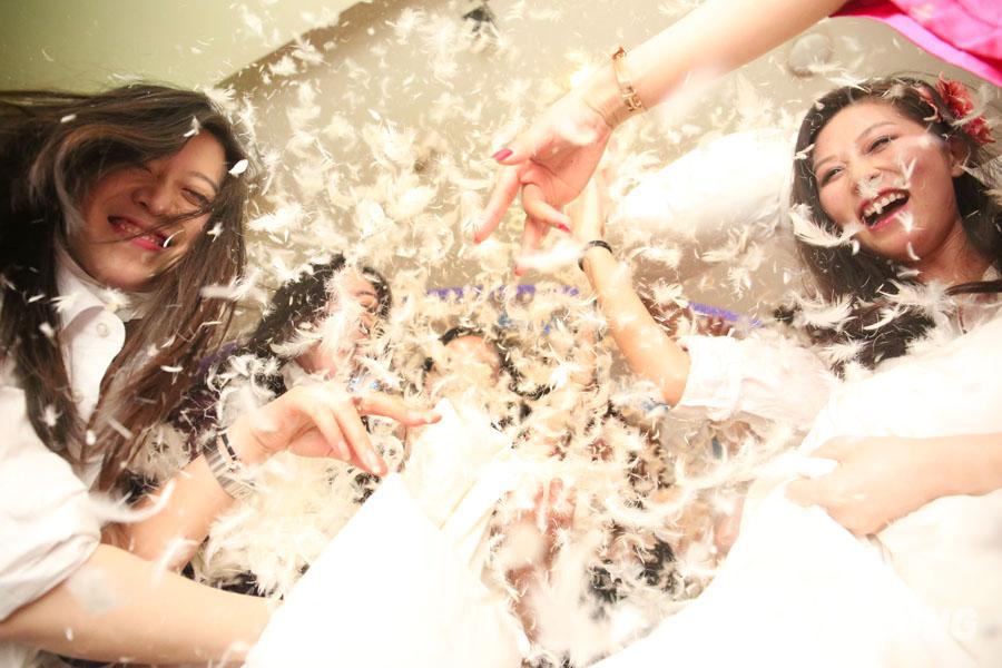 3月19日,星座派对上的枕头大战。千龙网记者 陈康摄