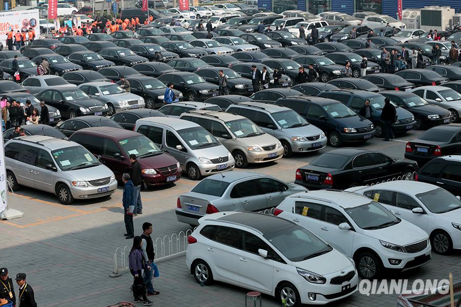 3月26日,第六场中央公车拍卖在北京预展,竞拍者在亚运村汽车市场看车。千龙网记者 李贺摄