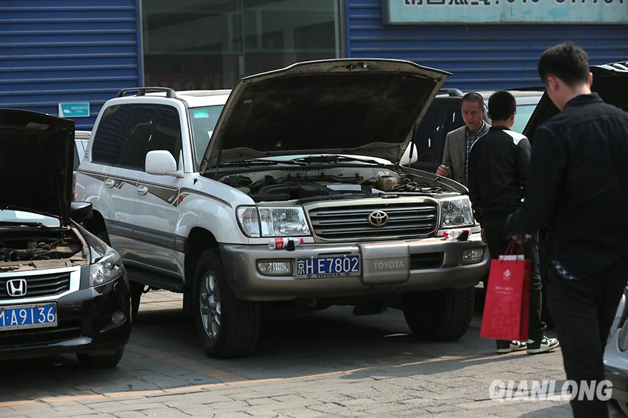 3月26日,第六场中央公车拍卖在北京预展,竞拍者在亚运村汽车市场看车。千龙网记者 李贺摄