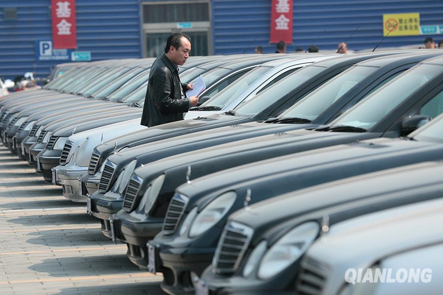 3月26日,第六场中央公车拍卖在北京预展,竞拍者在亚运村汽车市场看车。千龙网记者 李贺摄