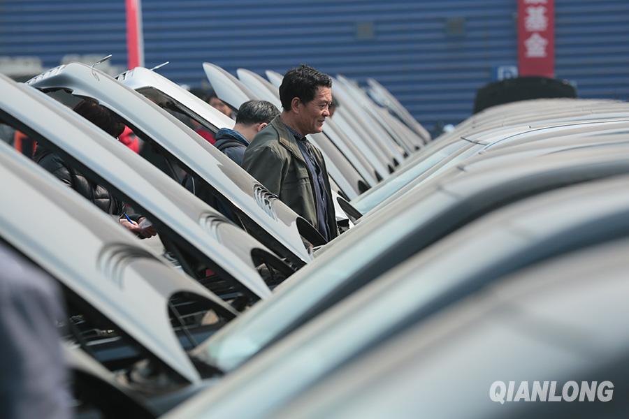 3月26日,第六场中央公车拍卖在北京预展,竞拍者在亚运村汽车市场看车。千龙网记者 李贺摄