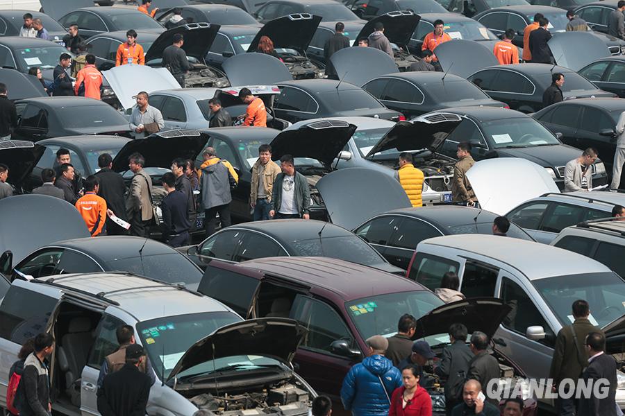 3月26日,第六场中央公车拍卖在北京预展,竞拍者在亚运村汽车市场看车。千龙网记者 李贺摄