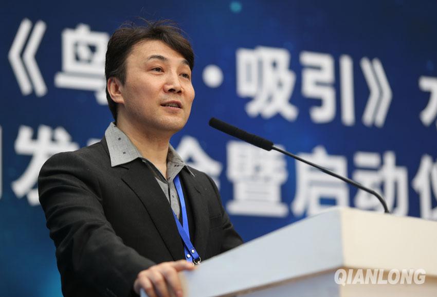 3月31日,艺术总监赵永滨介绍创作理念,当日,大型视听音乐秀《鸟巢·吸引》水立方版在京启动。千龙网记者 戚连民摄