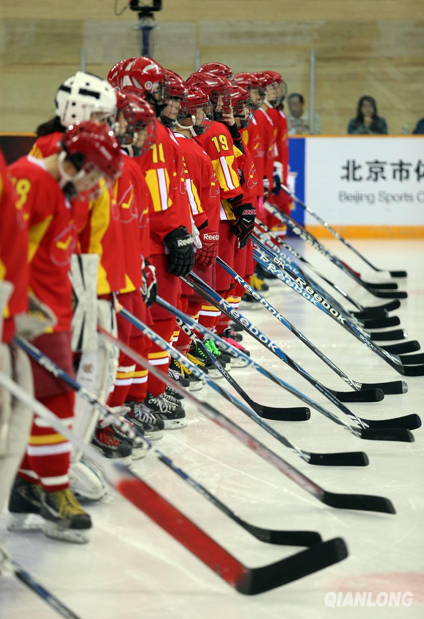 4月7日,2015年女子冰球世锦赛甲级B组比赛中国5比2朝鲜,如中国排名第一将晋级甲级A组。千龙网记者 戚连民摄