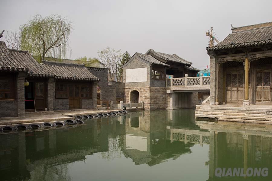 4月15日,密云县古北水镇景区内,楼阁在溪流中掩映。千龙网记者于颖摄