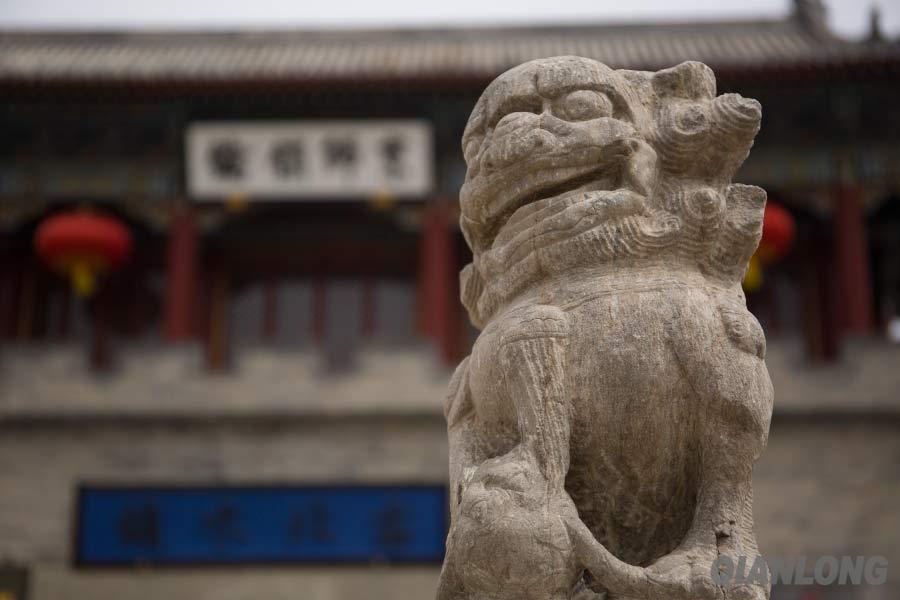 4月15日,古北水镇门口的石狮亦为古物,它屹立在古镇的门口,为这一方水土带来祥和之气。千龙网记者 于颖摄