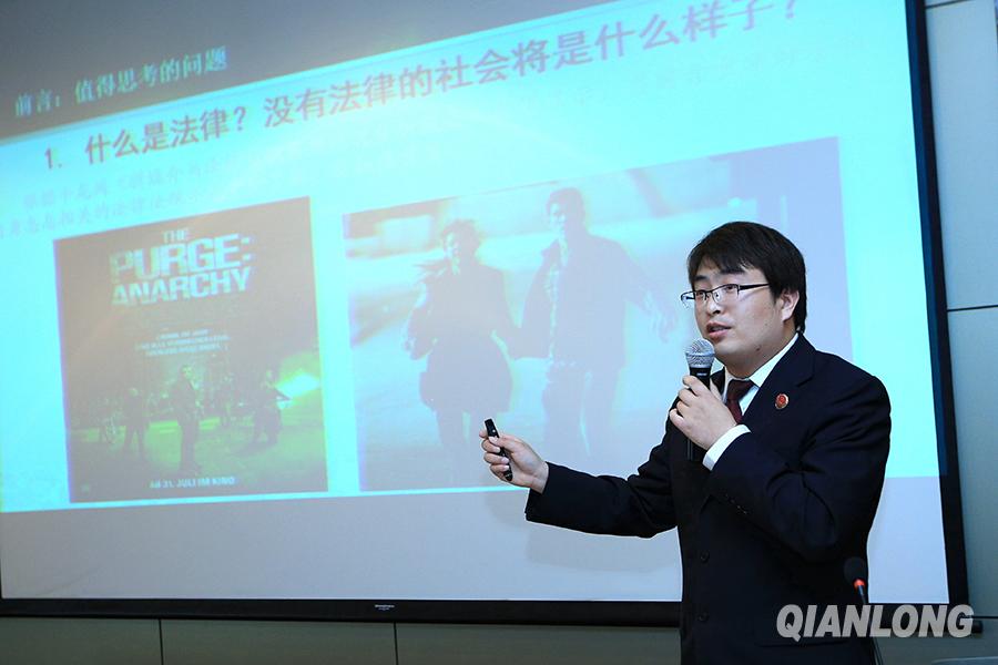 4月15日,北京市人民检察院第一分院检察官张青聚现场与学生互动。千龙网记者 王悦摄