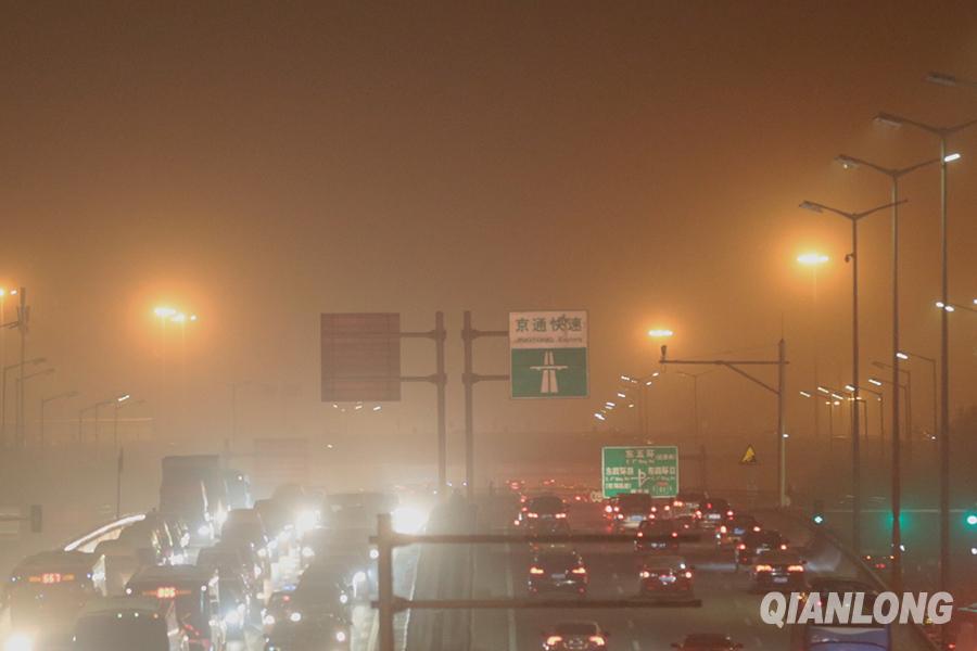 4月15日傍晚,北京出现沙尘天气 ,城区能见度降低。千龙网记者李贺摄