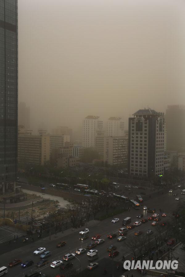 4月15日傍晚,北京出现沙尘天气 ,城区能见度降低。千龙网记者陈康摄