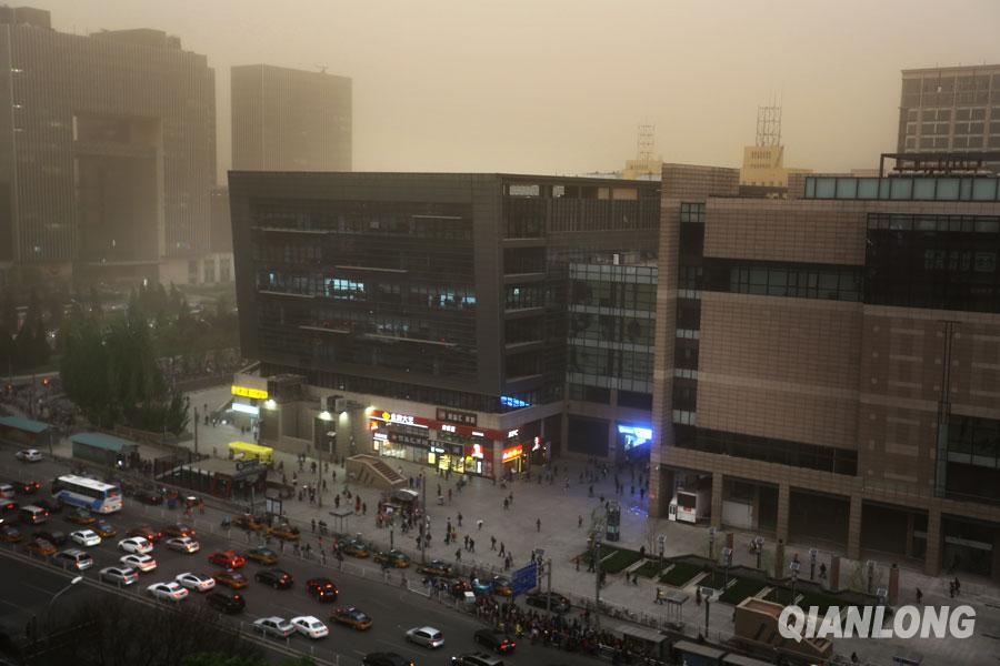 4月15日傍晚,北京出现沙尘天气 ,城区能见度降低。千龙网记者陈康摄