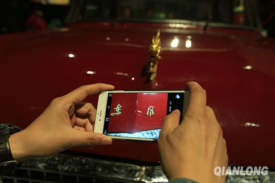 4月17日,老爷车博物馆内的东风汽车标志吸引游客拍照留念。千龙网记者 王悦摄