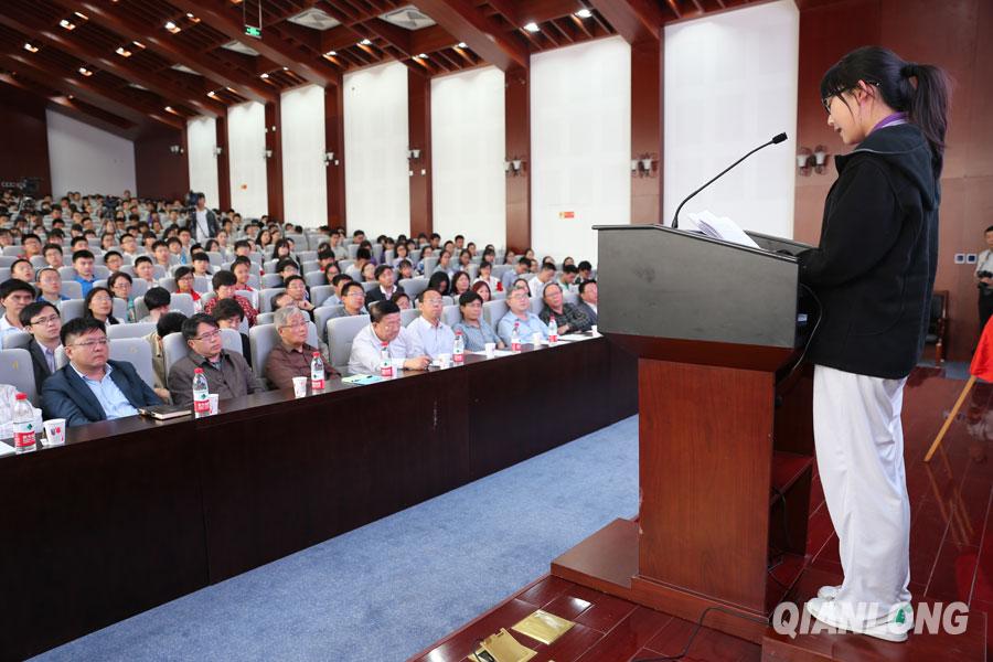5月4日,北京三十五中学国际部学生李昱萱在会上发言。三年前她曾前往贵州丹寨中学支教,李昱萱在大会上分享她做义工的感受:“我现在觉得志愿者对我来说是一种再平常不过的生活方式,力所能及地帮助别人,我很享受这种‘超酷’的感觉。”她在发言中倡议,全市中学生应该积极参与到慈善义工活动中来。千龙网记者 鄂晓颖摄