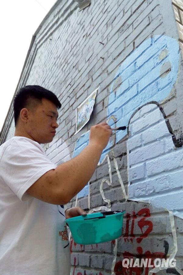 手游特效师大韦:5月1日兼职做墙绘涂鸦,美化环境,遮盖小广告。千龙网发