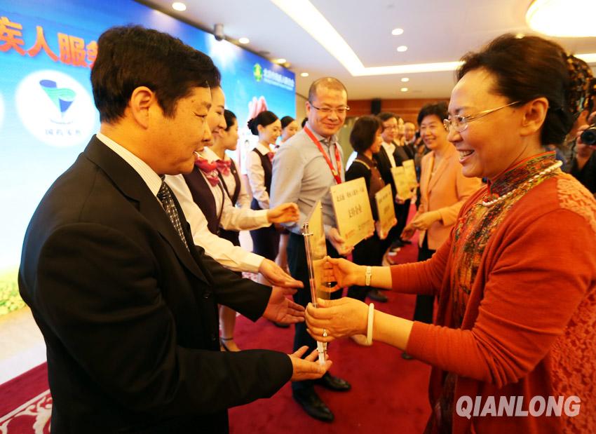 5月13日,吴文彦等领导向爱心企业授牌。千龙网记者戚连民摄