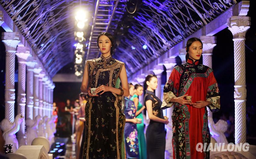 发布会以一缕青烟和一滴清泉为原点,开启了东方文明的大门,随后用三个部分、64套服装,向来宾展示了中国的文化传承与时尚共融。前两部分的旗袍show,通过服装向人们讲述了一段内涵丰富的历史服饰文化和其间最纯美、最能体现中国女性美的中国旗袍起源的故事。描绘当代旗袍如何将中国女性的内敛含蓄与现代时尚之美融合为一,为传统旗袍增加了更多时尚元素和时代气息,精细的针线则进一步凸显了东方现代女性的柔美、精致、优雅与时尚共存的气质和神韵。