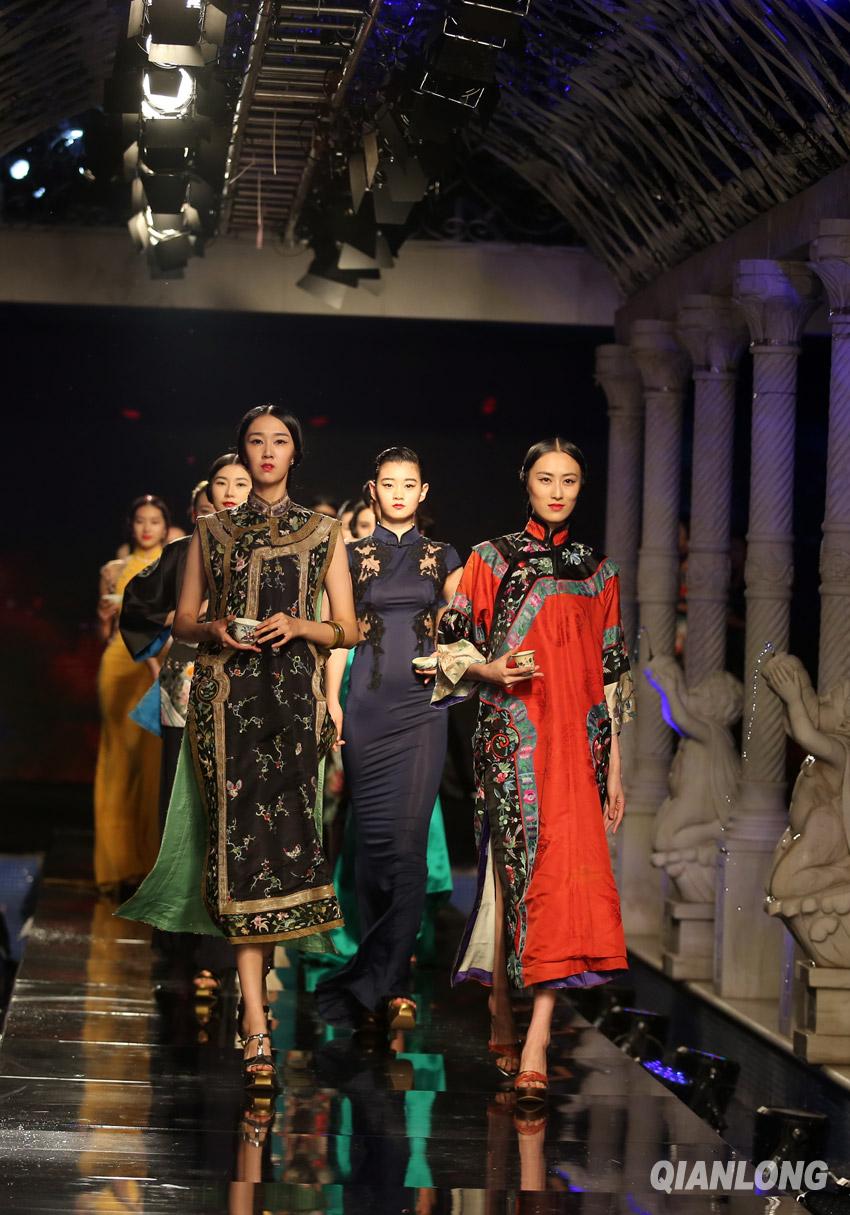 5月16日,模特精彩演绎设计师的作品,当日,高级定制品牌BE.PRIVE东方神韵时尚旗袍发布会在京举行。千龙网记者 戚连民摄