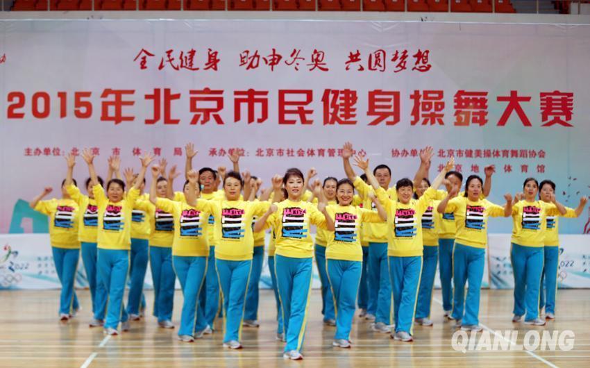 6月27日,为申办2022年冬奥会营造良好健身氛围,2015年北京市民健身操舞大赛在地坛体育馆举办。千龙网记者 戚连民摄