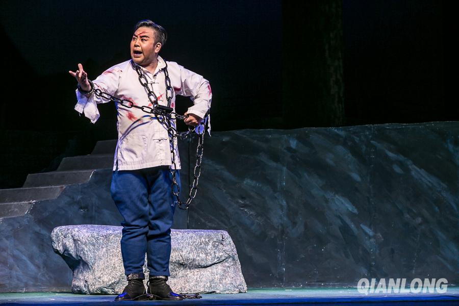7月29日,经典现代戏系列展演《红灯记》中“刑场斗争”片段。(宋鹏飞/摄)