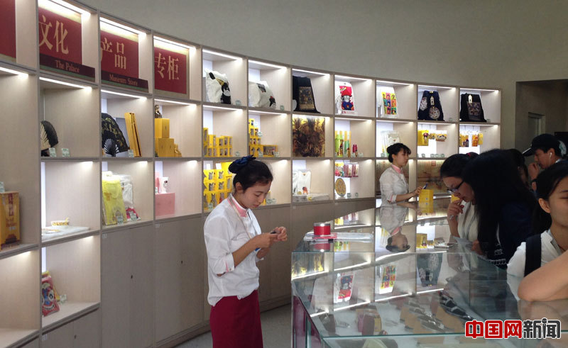 北京奥运塔故宫文化产品展销区,购买故宫文化产品的游客络绎不绝。