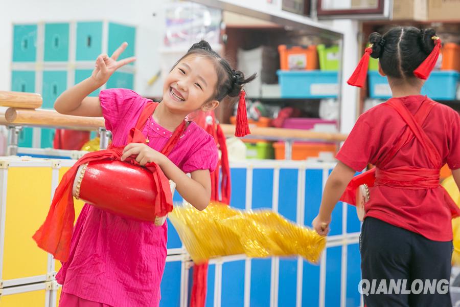 7月9日,金台书院小学校腰鼓队排练间隙。千龙网实习记者宋鹏飞摄