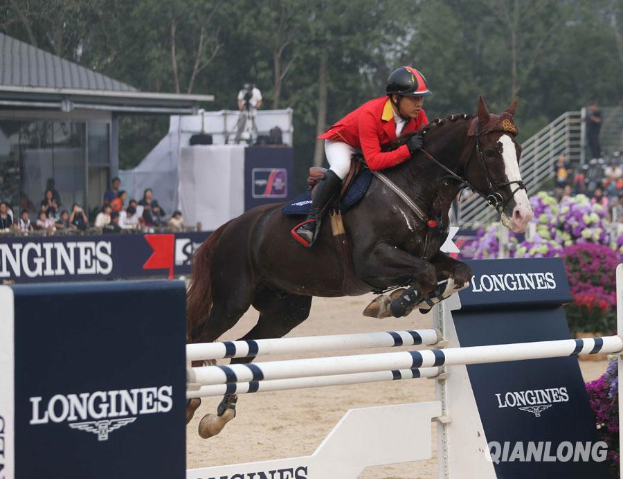 10月7日,2015浪琴表国际马联(FEI)场地障碍世界杯中国联赛总决赛落幕。图为参赛骑手在比赛中。千龙网记者 戚连民摄