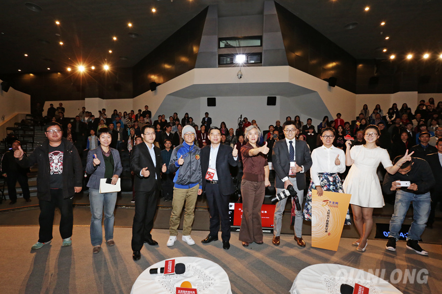 10月28日,《大时代下的摄影记录》主题摄影讲座在中华世纪坛举办。图为现场嘉宾与工作人员一齐为千龙网点赞。千龙网记者 王璟玥摄