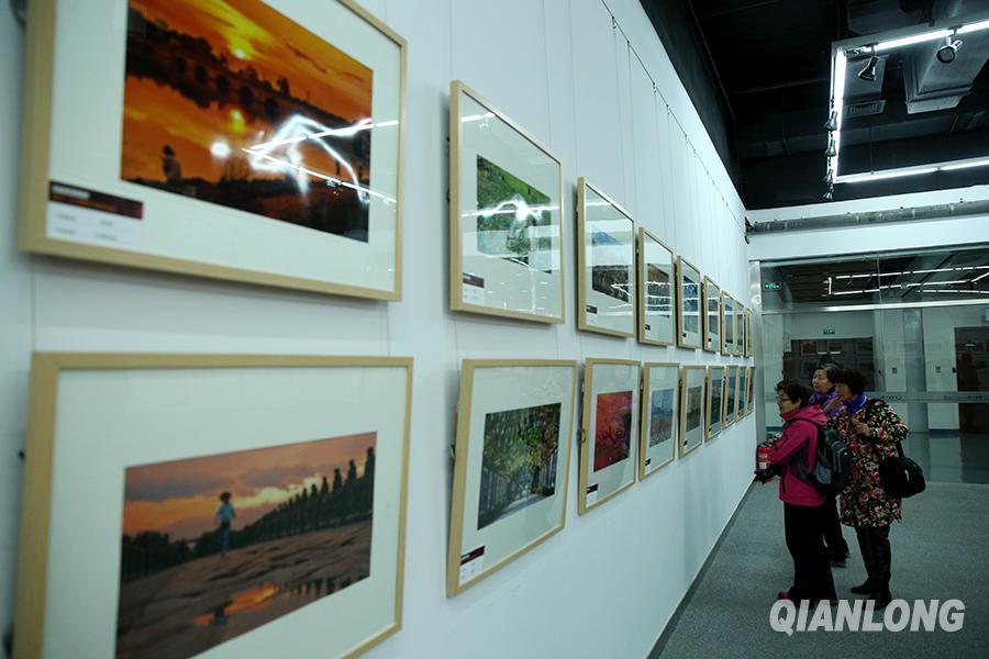 11月17日,“我们从新区走来-北京大兴摄影名家作品展”在北京举办。图为展览现场,影友们聚在一起谈论摄影技巧。千龙网记者王悦摄