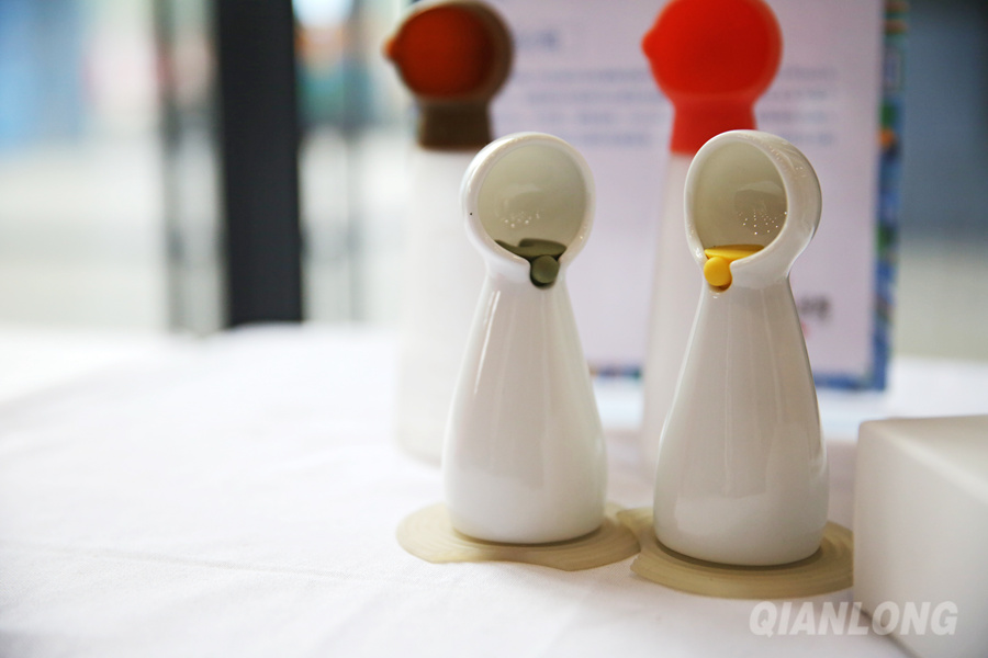 11月18日,2015中国设计节在北京大兴区拉开帷幕。图为展会上的香油娃娃调料瓶。千龙网记者 王璟玥摄