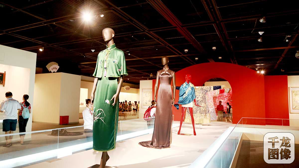 8月9日,《匠心筑梦烁古今—燕京八绝》在首都博物馆展出。图为燕京八绝之一的京绣旗袍服饰(8月12日摄)。千龙网实习记者许珠珠摄