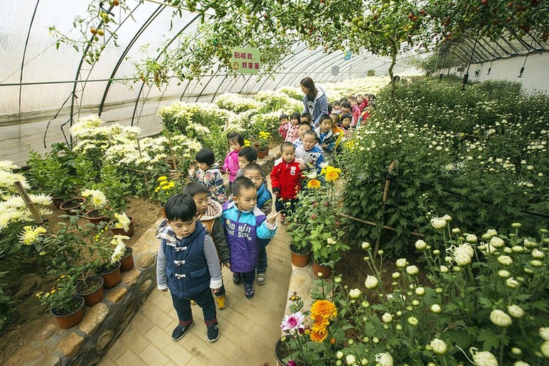 与以往菊花美食节相比,今年美食节呈现给市民更多的是生态新面貌。西柏店村生态循环农业实现了“接二连三”发展的新模式,以沼气工程为核心,结合有机肥产业,带动了整个村庄实现系统能量转换、物质循环及有机废弃物综合利用的农业循环经济系统。全村家家户户实现了新能源沼气直供,而且沼液作为液态有机肥,沼渣制作成固体有机肥,又完全施用于村内的温室大棚。西柏店的菊花采用的是有机培植原理,禁止使用农药,禁止使用化肥,都是利用沼渣、沼液有机肥栽培,食用安全,是无污染、纯绿色的有机食品。同时,西柏店村通过系列农村生态文明建设工程,通过系列农村信息化建设与应用工程,通过研究设计和规范实施,“美丽智慧”乡村建设已初具成效,农户可通过手机APP自动化种植管理大棚。