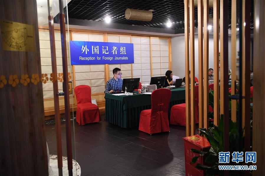 2月27日,全国两会新闻中心的工作人员在现场忙碌。当日,设在北京梅地亚中心的全国两会新闻中心正式开展工作。第十二届全国人民代表大会第五次会议和政协第十二届全国委员会第五次会议,将分别于2017年3月5日和3月3日在北京开幕。新华社记者金良快摄