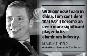 "We firmly believe that China will continue its rapid progress. Alcoa will continue to establish closer cooperation and beneficial relations with our partners in China," Alcoa Asia President Chen Jinya said.