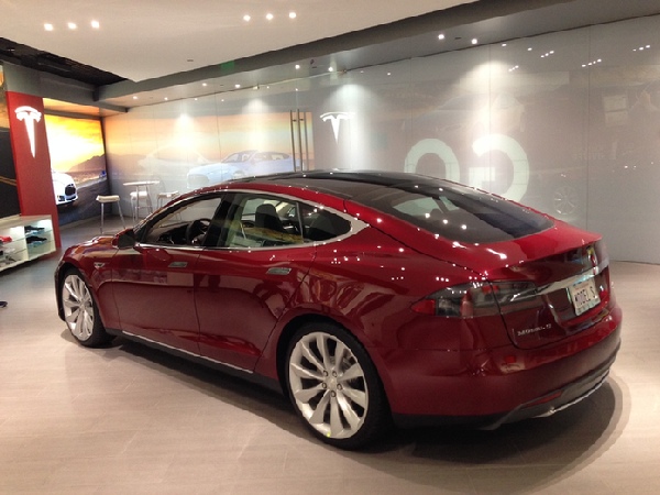 The new Tesla Model S electric car is available to rent in Shanghai. [File photo]