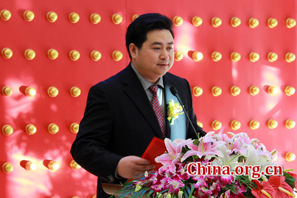 Shi Can, president of SinoCloud, delivers a speech at a ceremony held at National Equities Exchange and Quotations Wednesday in Beijing. [Photo: China.org.cn] |