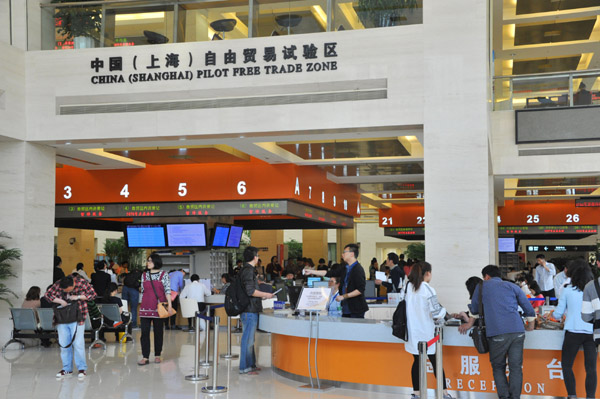 Reception section of the China (Shanghai) Pilot Free Trade Zone. The FTZ will focus on constructing a high-tech and innovative center. [Photo/China Daily] |