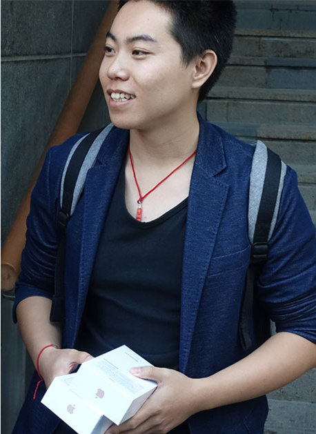 Zhang Yubo, an Apple aficionado took the red-eye train from Inner Mongolia and arrived in Beijing at 3 am to pick up his iPhone 6s in person, on Sept 25, 2015. [Photo by Liu Zheng/chinadaily.com.cn] |