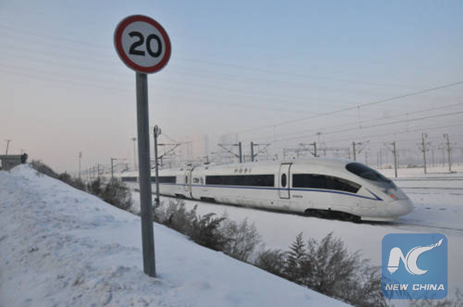 Bullet train G1202 departs from Harbin West Railway Station to Shanghai Hongqiao Railway Station, Dec. 28, 2013. [Xinhua] |