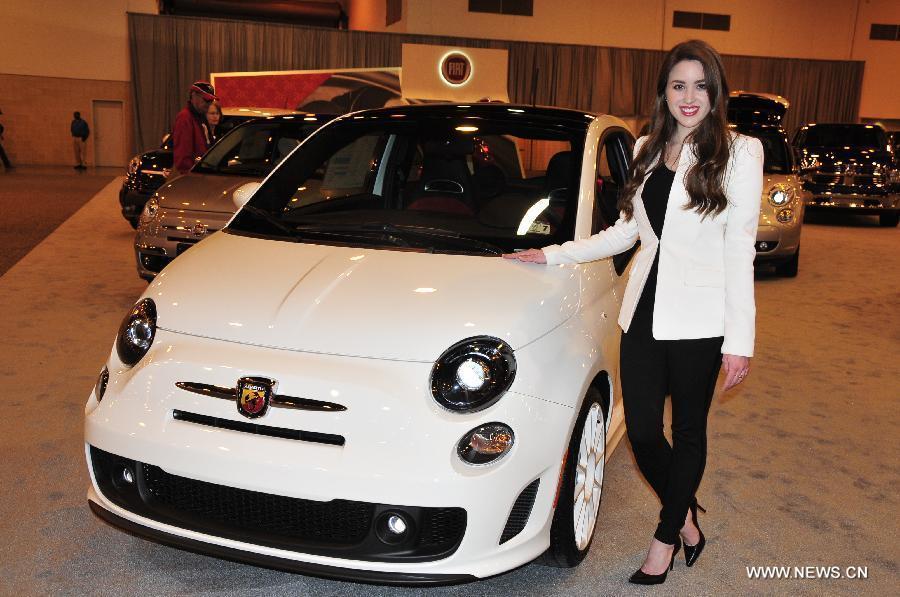 A model stands in the booth of Fiat during the 32nd Houston Auto Show in Houston, the United States, on Jan. 21, 2015. [Xinhua] |