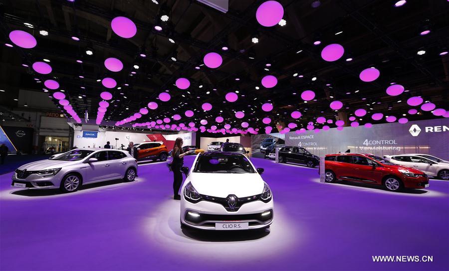 A staff dusts a Renault car during the media day of the 94th European Motor Show in Brussels, capital of Belgium, Jan. 12, 2016. [Xinhua] |
