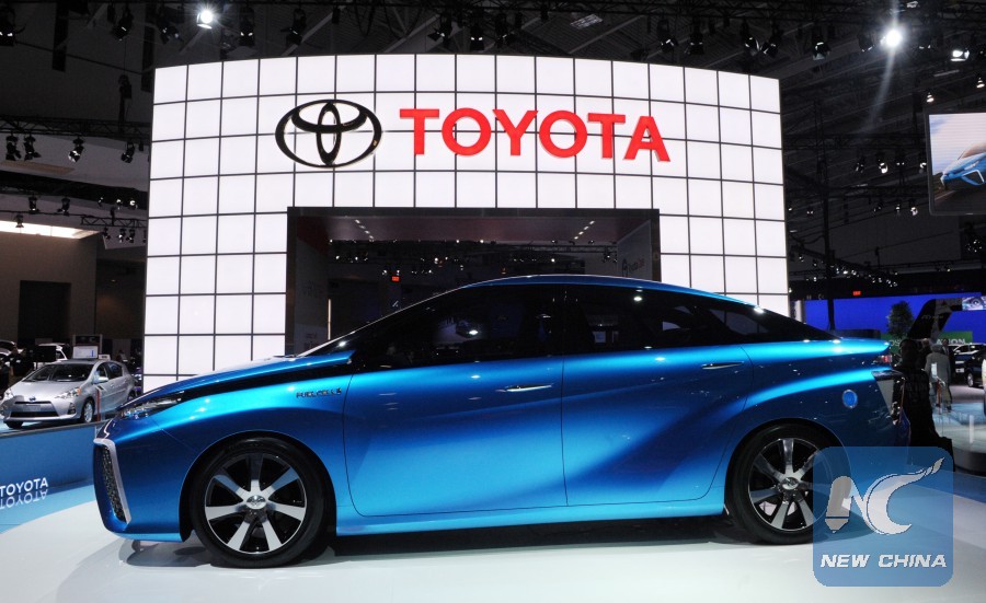 A Toyota FCV concept car is displayed at the Washington auto show in Washington D.C., the United States, Jan. 23, 2014. [Xinhua] |