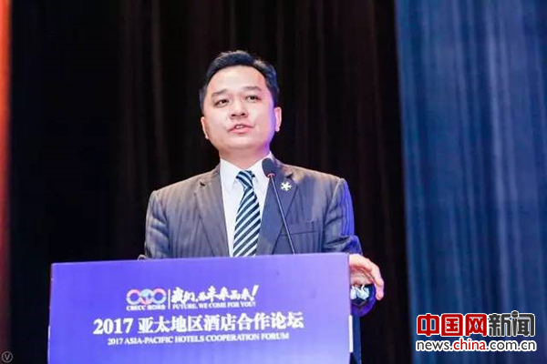Xian Feng, executive chairman of the Hotel Investors Association of CRECC chairs the election meeting. [Photo/China.org.cn]