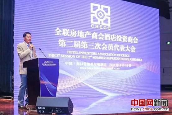 Zhang Hui, president of China Jinmao Holdings Group Limited, delivers a speech at the third session of the 2nd member representative assembly of the Hotel Investors Association of CRECC. [Photo/China.org.cn]