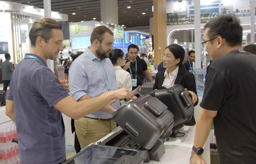 Participants from Argentina visit the 134th session of the China Import and Export Fair in Guangzhou, south China's Guangdong Province, Oct. 15, 2023. (Xinhua/Lu Hanxin)